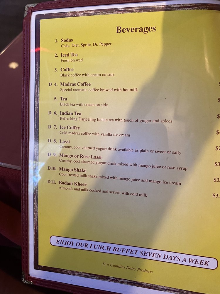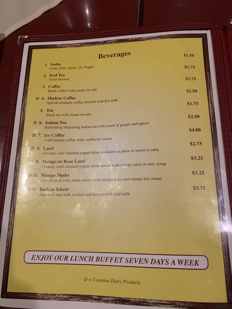 - Beverages: Refresh with unique drinks like Madras Coffee or flavored Lassis.