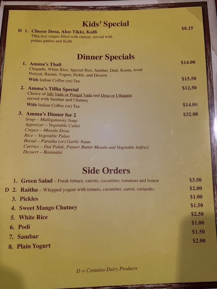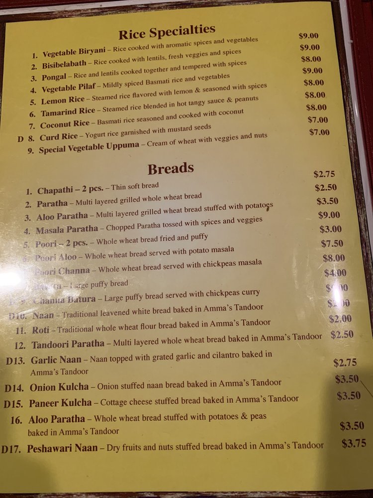 Amma's Kitchen Cincinnati Menu (Update 2025)